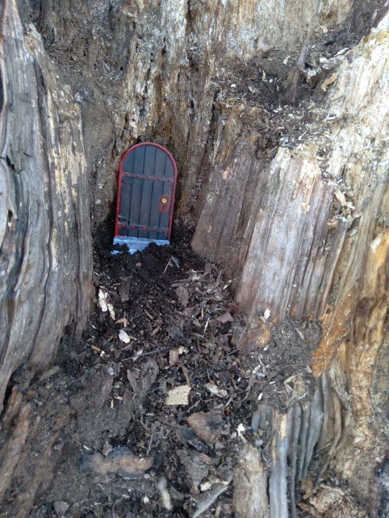 Two hobbit doors have been placed in tress. One by my house and the other at Hanes Park. No one has stolen them after a week. People do pick them up and move them.