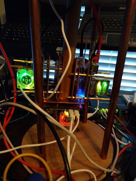 Latest update on my quantum Pi4 alpha design. Picture below are 3 Raspberry Pi 4 with 8 GB Memory, 64 Meg SSD card and running Raspbian OS 64 bit. All cooled with super cooler tower with LCD lights. Plans are to add 4 more nodes and make it running kubernetes cluster and TensorFlow.